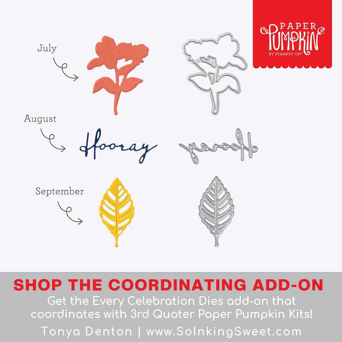 I find the value of the Paper Pumpkin kits and the dies to be well worth it. It helps to further creativity long after the kits have been completed. In this case, I reached back to the 2024 PPKits Q3 (that’s how it’s labeled) and pulled out Every Celebration Dies. See it below. It has three dies and I used the leaf die for my circle of leaves on my card. My Hubby and my crafting friends, Judy & Cindy, really liked how my card turned out!